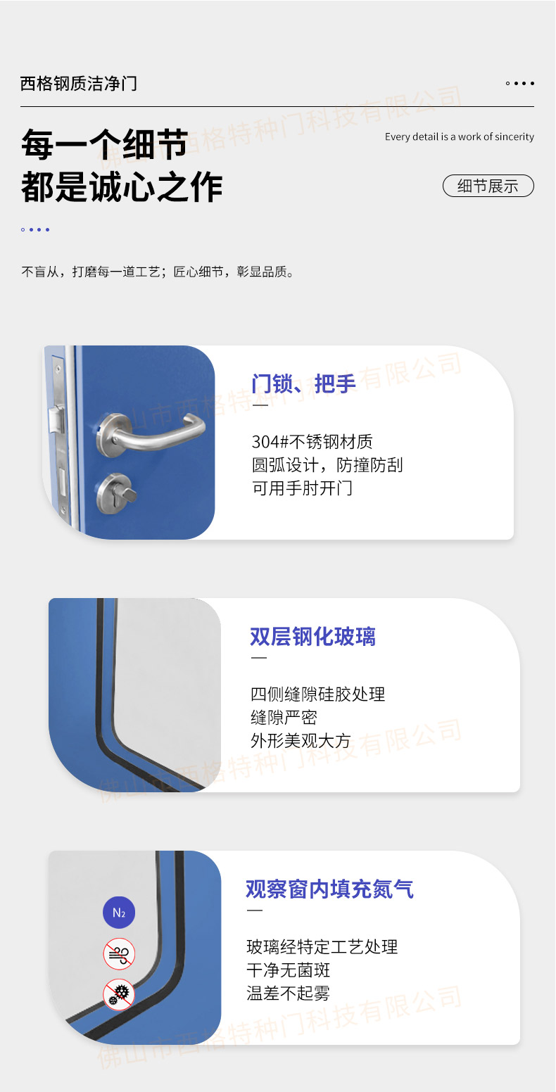 產品簡介:廣東西格,大型凈化門生產廠家,專用生產各類型凈化門,款式,視窗,材質厚度,均可定制。